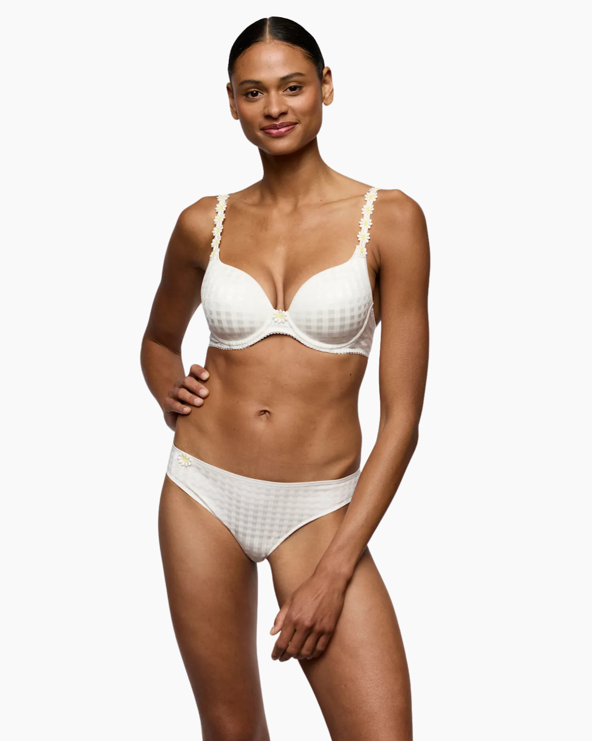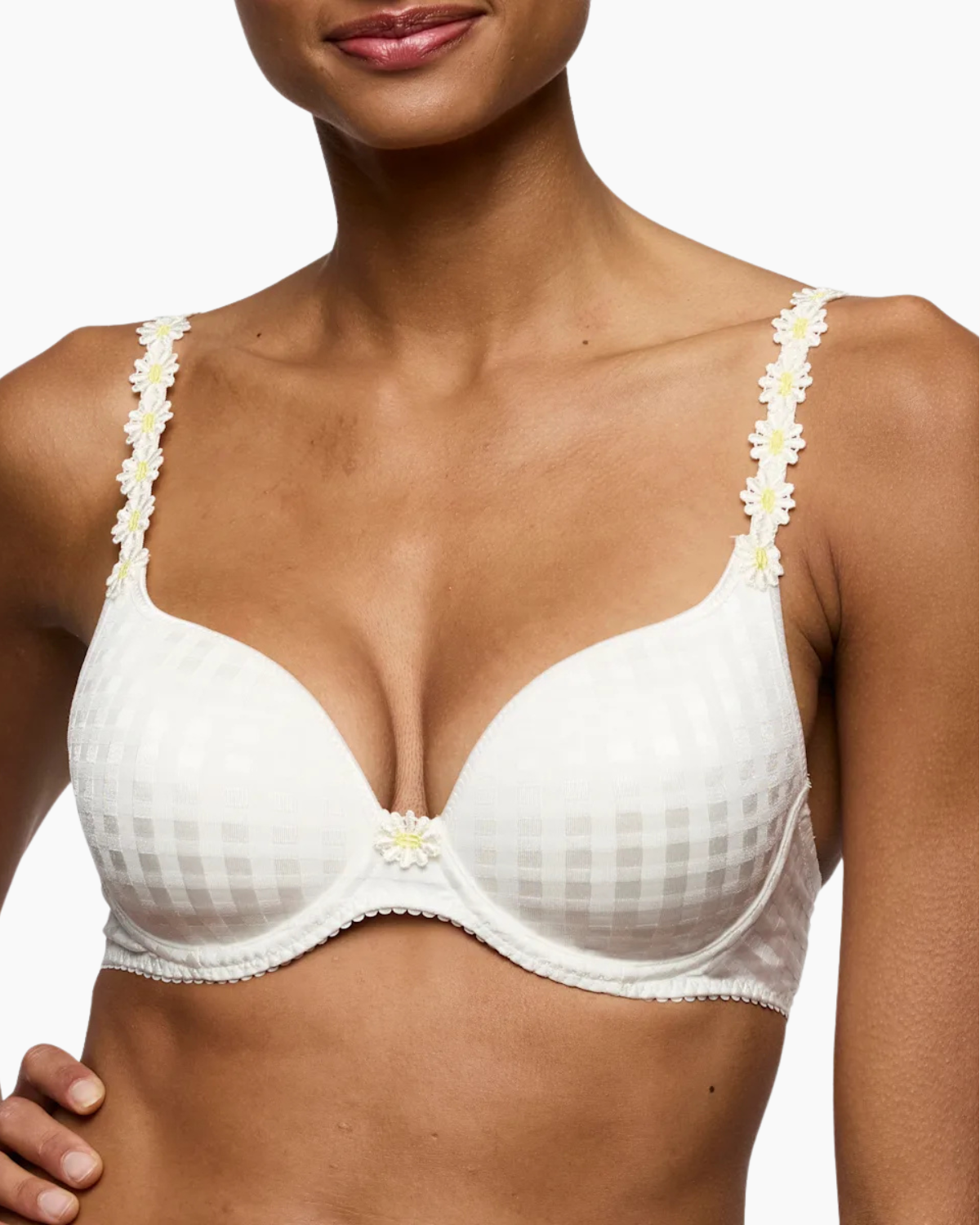 Celebrated for its iconic daisy straps and legendary fit, this bra is a statement in refined elegance. The softly padded underwired cups provide subtle lift and shape, while the multi-way straps, including a chic halter option, invite versatile styling. Rendered in an ivory hue and finished with a seamless, smoothing effect, it blends sophistication with all-day luxury.